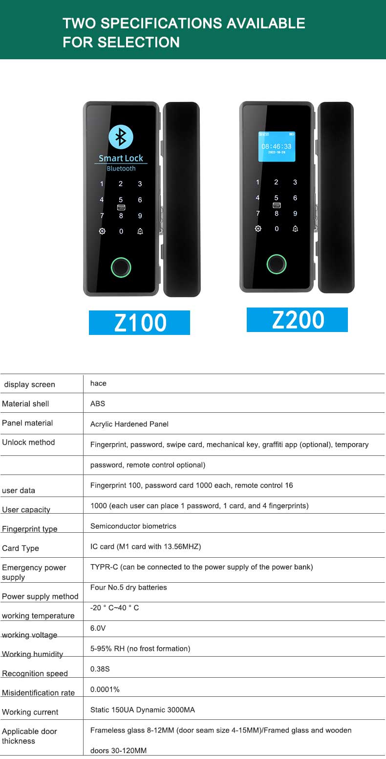 Unlock method    Fingerprint,password,swipe card,mechanical key,graffiti app(optional),temporary