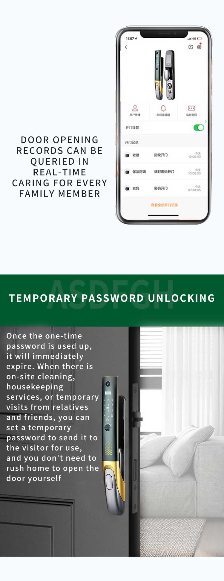 the visitor for use,and you don't need to rush home to open the door yourself
